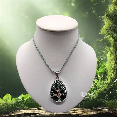 Élégant collier composé d’un pendentif en forme d’arbre de vie monté sur une pierre naturelle, symbole de force et d’enracinement.